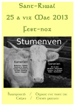 9 a viz Mae 2013, gant herkerAr c’hwezekvet "Fest-noz ar c’harter" a vo d’ar 25 a viz Mae e Stumenven , war derouer Sant-Riwal, er bloaz-mañ, . Digoust evit mont tre. Evachoù ha krampouezh ahed an nozvezh. Evit gouzout piv vo o seniñ pe o kanañ, gwelit ar skritell staget daheul. Ar gartenn :
