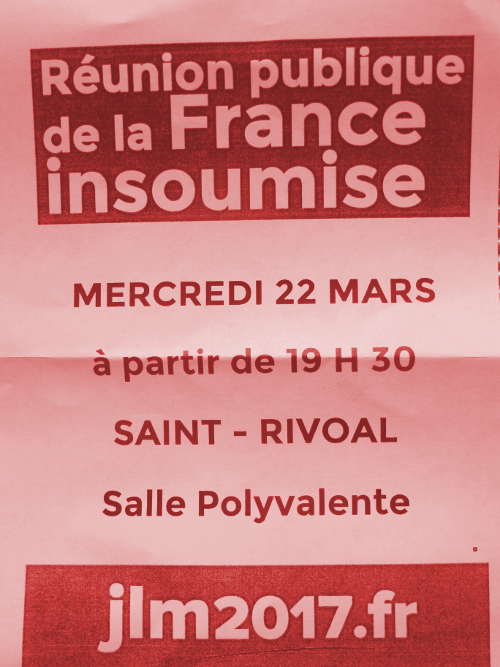 Accueil > Réunions publiques > Campagne présidentielle à St-Rivoal | JLM2017 : le 22 mars 2017
