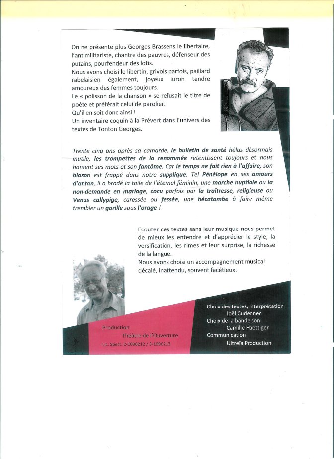 - aura lieu le spectacle de Joël Cudennec "Brassens le polisson parolier".