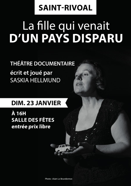 Seule sur scène, Saskia dit son désarroi, la brutalité du changement et la découverte d’un nouveau monde dans un langage concis et poétique. Des objets d’origine et une bande-son originale emportent le spectateur dans son "pays disparu" où la petite histoire côtoie la grande. Son texte parle de liberté, de justice et de solidarité. Quelles valeurs allons-nous transmettre ?
