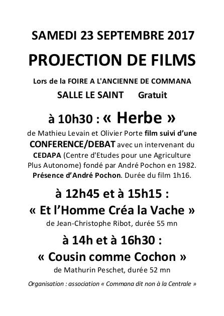 Dans le prolongement de son questionnement sur l’énergie, et voulant toucher un large public, l’association « Commana dit Non à la Centrale » diffusera trois films présentant des alternatives et des pistes de réflexions sur l’agriculture conventionnelle lors de la 29ème foire à l’ancienne de Commana le 23 septembre :