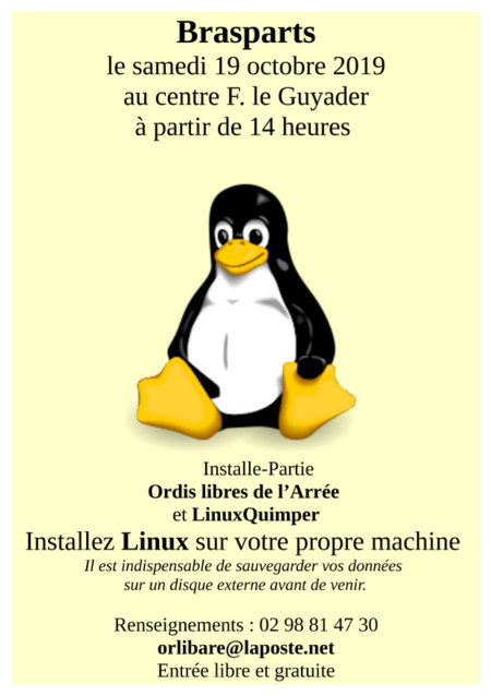 Install-party Linux à Brasparts : le 19 octobre 2019samedi 12 octobre 2019, par