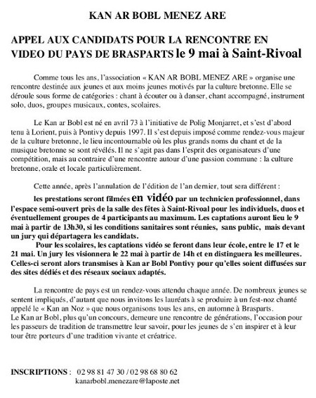 Kan ar bobl 2021 e Sant-Riwal : d’an 9 a viz Maedimanche 14 mars 2021, par