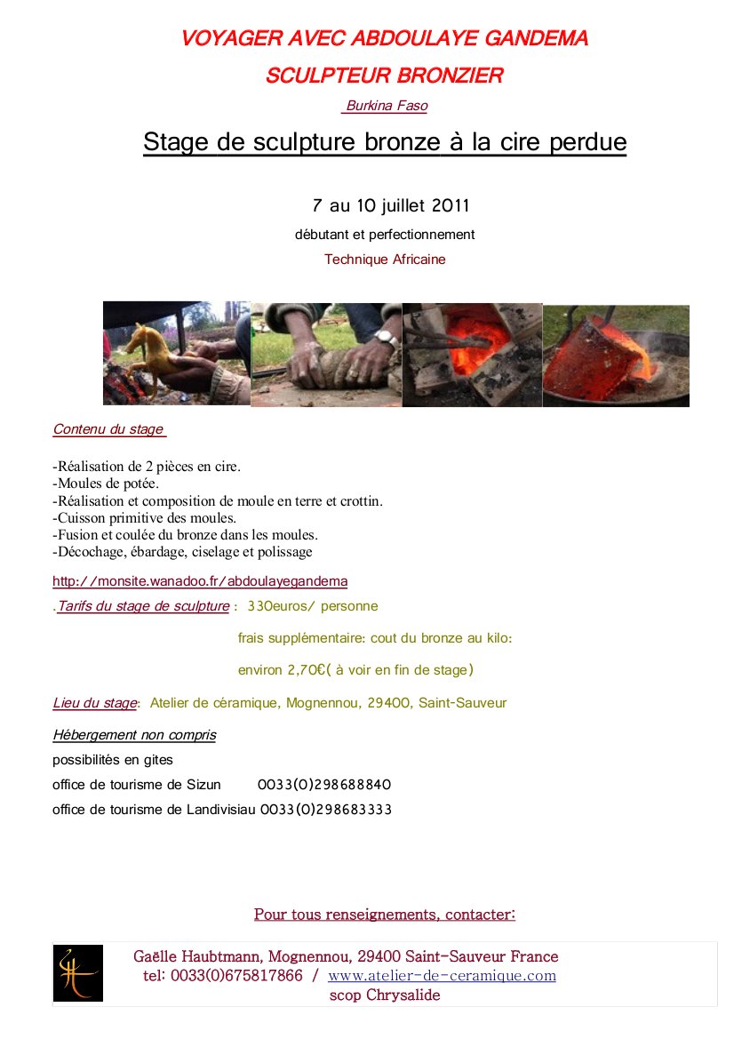 Organisation d’un stage de Sculpture Bronze à la cire perdue