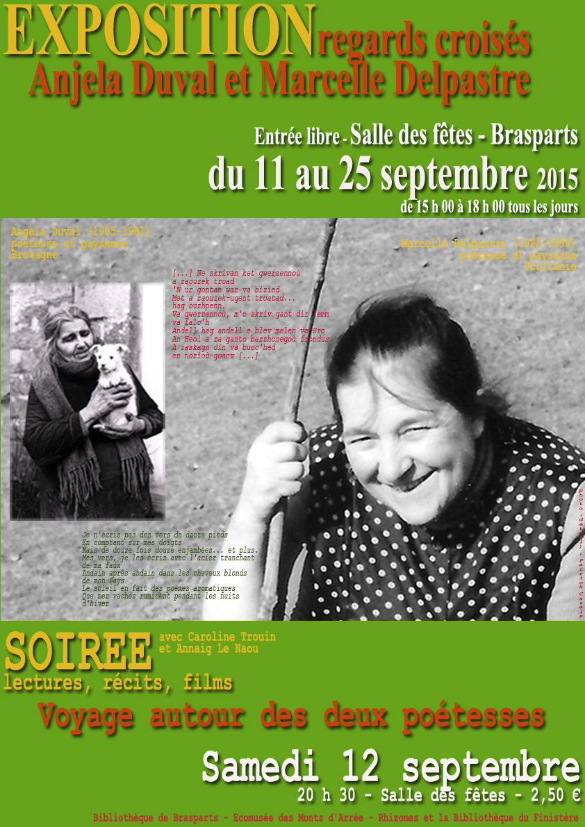 Ces deux poétesses, l’une bretonne(Anjela Duval), l’autre occitane (Marcelle Delpastre) ont un parcours commun, leurs poèmes, mais aussi leur vie de paysanne proche de la nature.