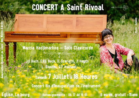 Petit mot pour vous informer que le clavicorde (copie d’un instrument de 1789) que j’ai réalisé est achevé et va jouer en concert sous les doigts de Marcia Hadjimarkos, en concert d’inauguration , le 6 Juillet au Vieux Marché et le 7 Juillet à Saint-Rivoal !