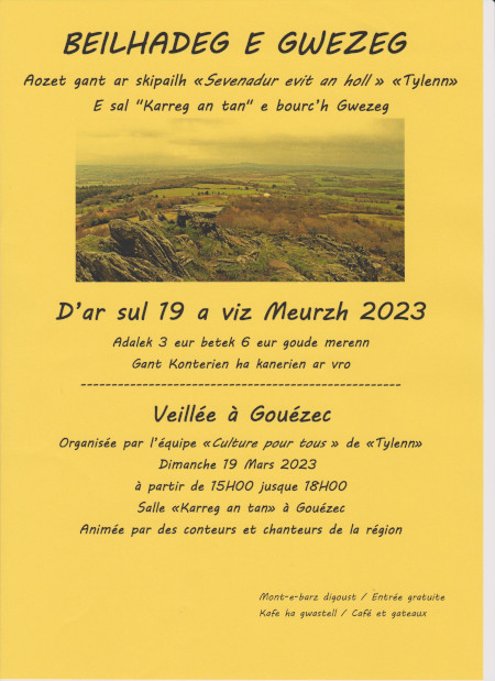 Plijadur ’vo e Gwezeg d’ar sul 19 a viz Meurzh 2023, e sal Karreg an Tan, gant ar veilhadeg, ur wech adarre !