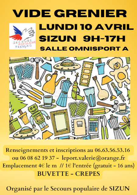 Accueil > Soutiens / Sikour > Vide-grenier Secours Populaire à Sizun : le 10 avril 2023